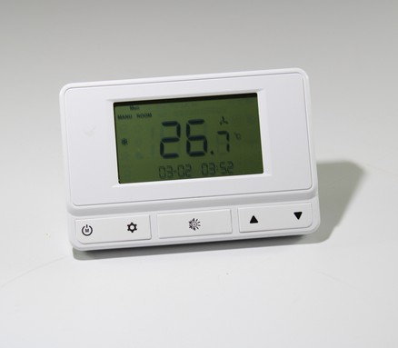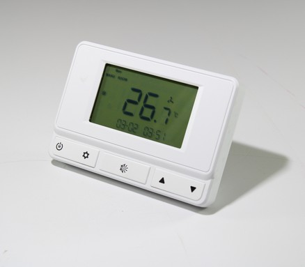 Der Thermostatsender ist Batteriebetrieben 2x AA, der Empfänger ist mit Stromspeisung 230 VAC. Zusammen mit dem Empfänger kann er (drahtlos) auf Distanz einen Kessel, ein motorisiertes Ventil oder ein anderes elektrisches Gerät befehligen. Immer zusammen mit dem Empfänger kann er soviele ON/OFF Kontakte wie es Öffnungs- oder Schließthermostate für eventuelle Zonenventile oder andere elektrische Geräte gibt befehligen. LCD Digitaldisplay für die Anzeige der Raumtemperatur und der eingestellten Temperatur. Wandaufhängung mit weißer Schachtel.