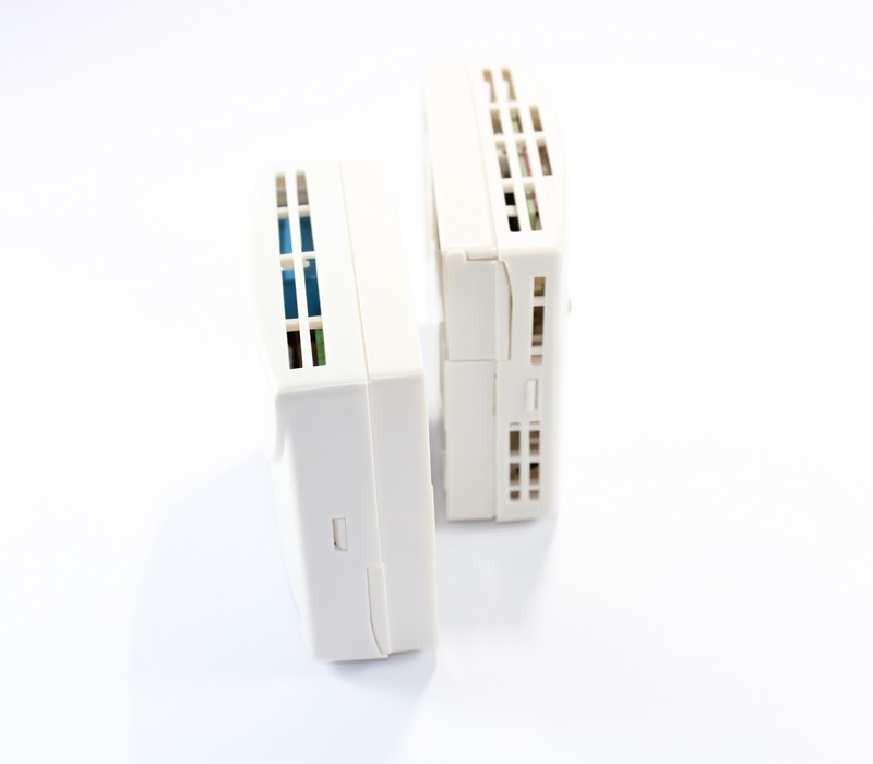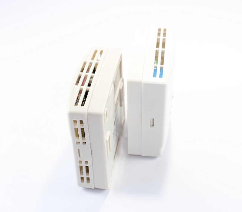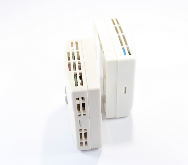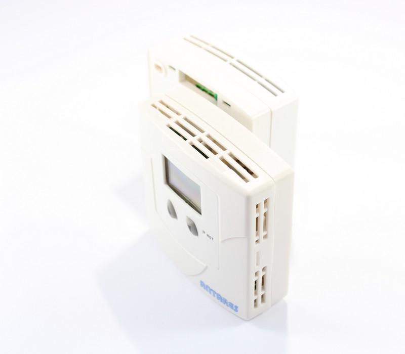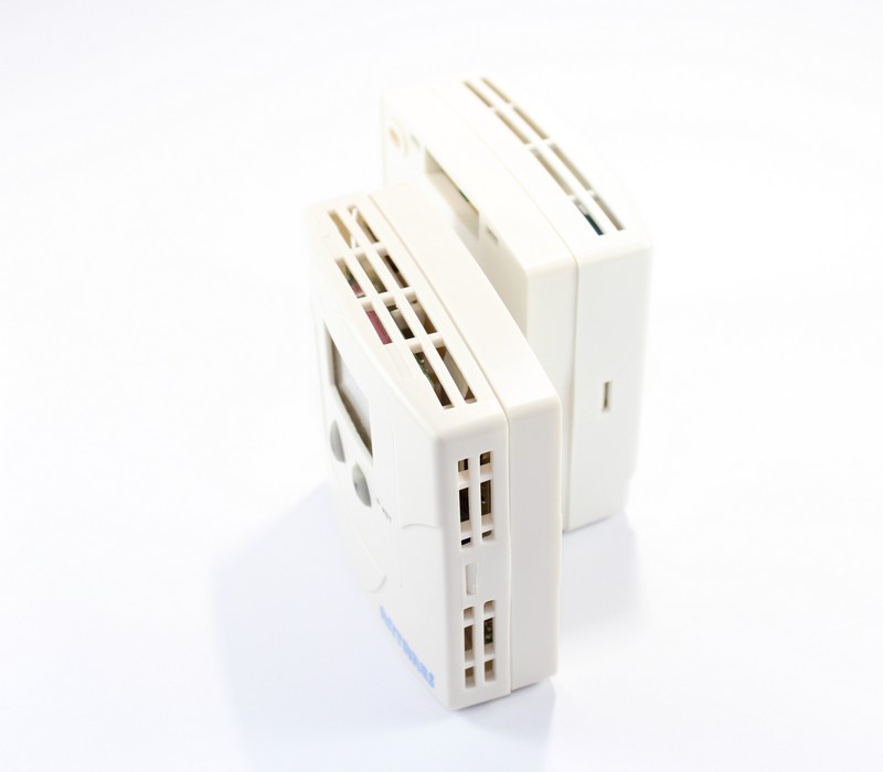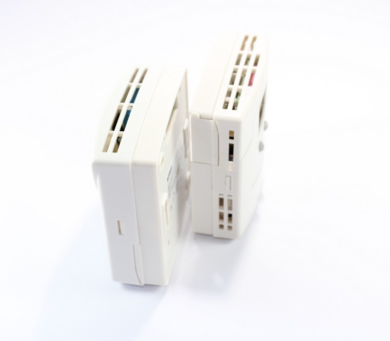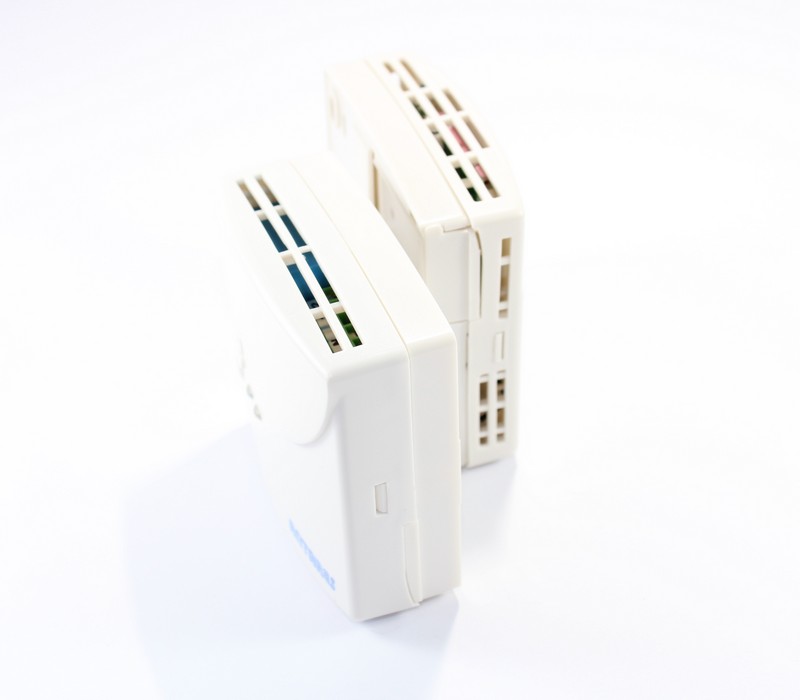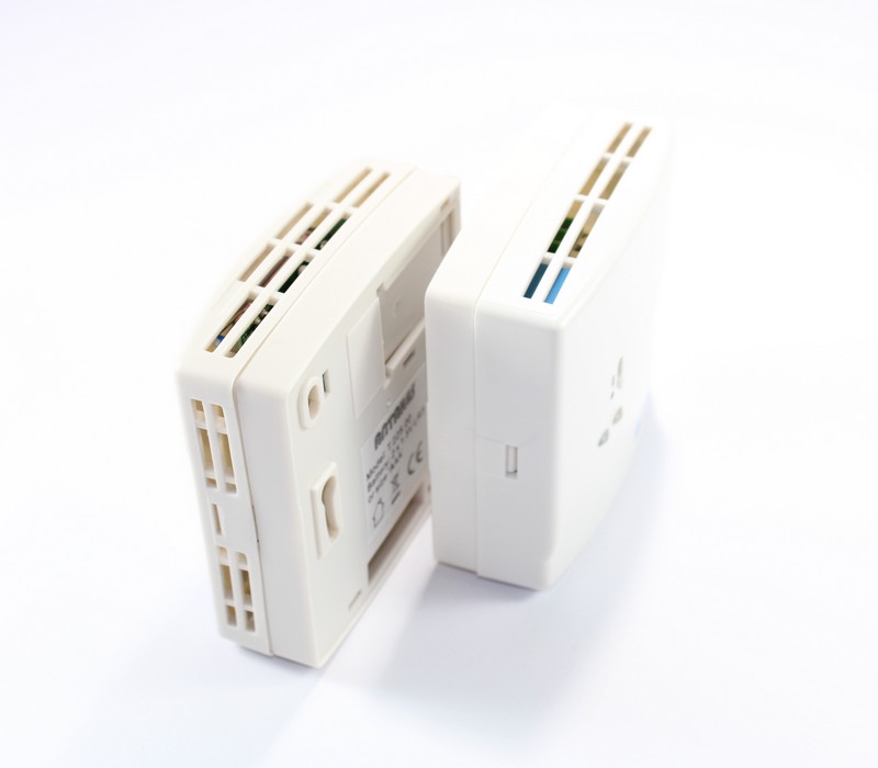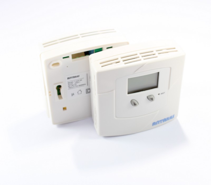 Der Thermostatsender ist Batteriebetrieben 2x AA, der Empfänger ist mit Stromspeisung 230 VAC. Zusammen mit dem Empfänger kann er (drahtlos) auf Distanz einen Kessel, ein motorisiertes Ventil oder ein anderes elektrisches Gerät befehligen. Immer zusammen mit dem Empfänger kann er soviele ON/OFF Kontakte wie es Öffnungs- oder Schließthermostate für eventuelle Zonenventile oder andere elektrische Geräte gibt befehligen. LCD Digitaldisplay für die Anzeige der Raumtemperatur und der eingestellten Temperatur. Wandaufhängung mit weißer Schachtel.