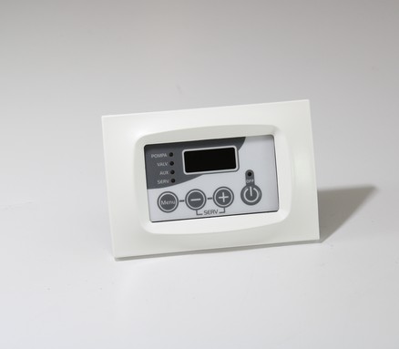 Detecta la temperatura a través de una sonda y conduce la bomba de recirculo. Alarma acústica para temperaturas superiores de 90°C activo también en la posición OFF. Interruptor para GRILL. Protección antihielo con encendido automático de la bomba. Con vaina y sonda. Alimentación 230V ~ ± 15% 50Hz. 60Hz. Caudal contacto 5A - 250 V ~ Regulación de la temperatura 30°C ÷ 90°C. Diferencial de intervención ~ 1,5°C. tipología sonda NTC. Visualización de la temperatura: 20°C ÷ 90°C. Grado de protección IP 30.
